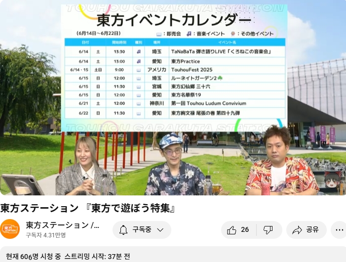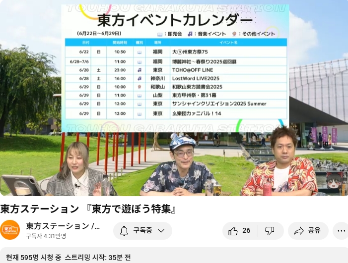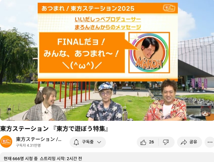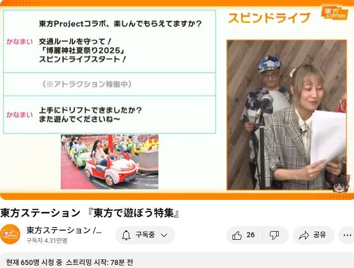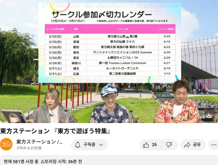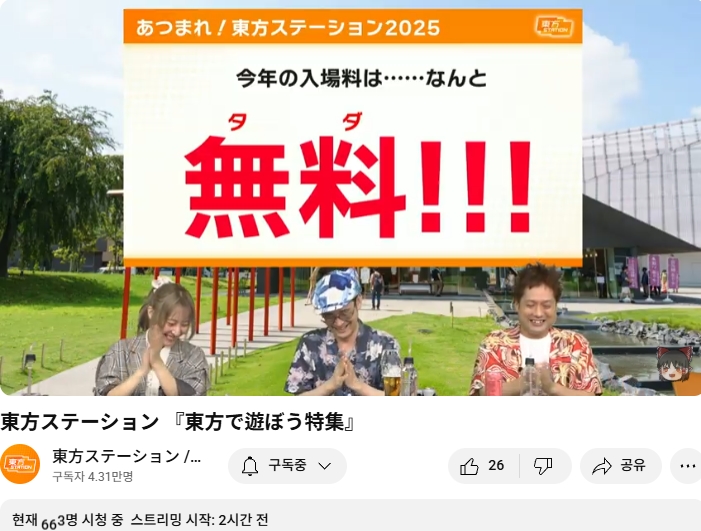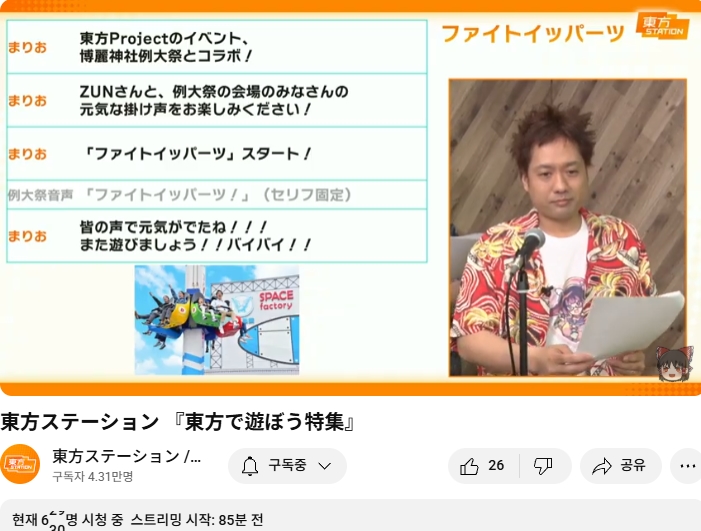 ○ 관련 : https://simugung.tistory.com/650 니코니코초회의2025 1일차, ZUN맥주 및 동방스테이션 출장 방송 등