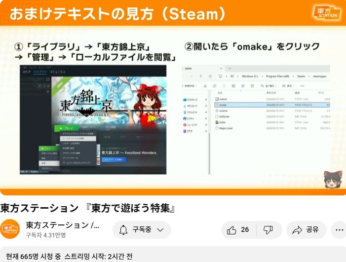 스팀판 금상경의 오마케 텍스트 보는 법 안내