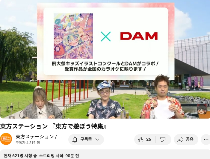 또한 최근 콜라보 업데이트로 동방 어린이 일러스트 콩클의 그림들을 DAM 노래방 동방악곡 때 볼 수 있다는 모양입니다.