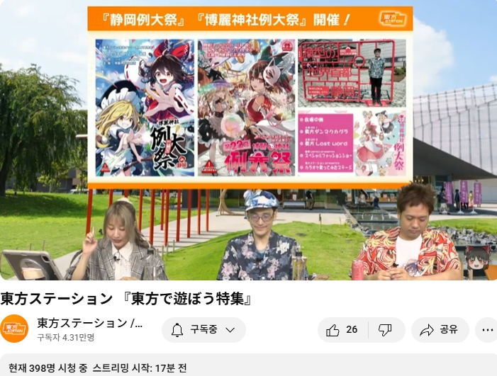 동방프로젝트 인기투표 개표 방송