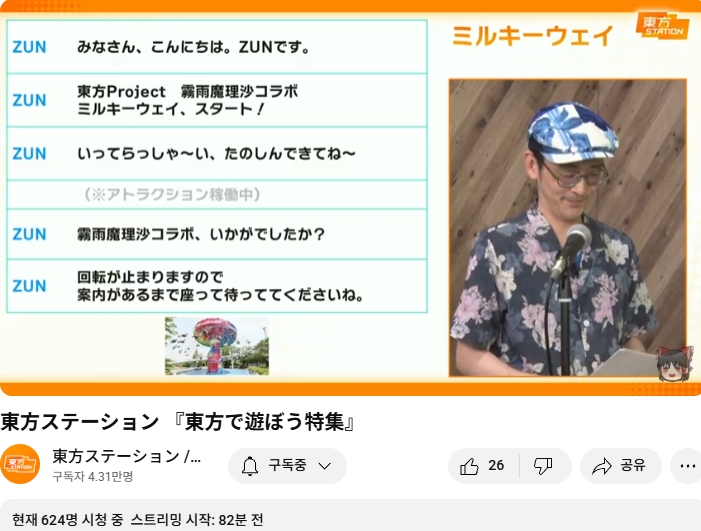 이번 방송은 ZUN님이 게스트로 참여하였습니다.