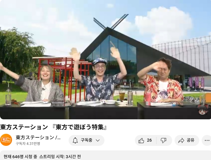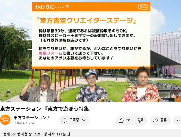 (방송 개시 직전 안내) "오늘은 동방스테이션에 나옵니다. 곧 바로 시작합니다!"