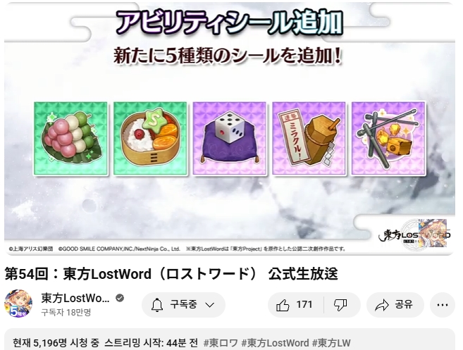 【#東方LostWord 公式生放送 第54回】