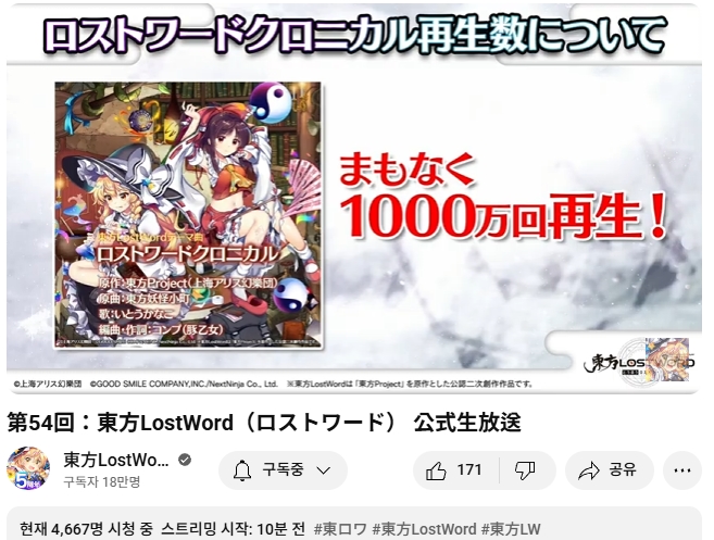 한편, 로스트워드의 주제곡인 로스트워드 크로니클 영상은 어느덧 1천만 재생을 기록했다고