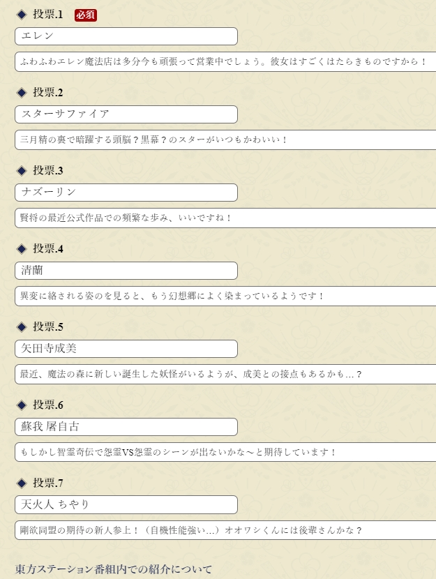 제19회 동방프로젝트 인기투표 지원작품 페이지