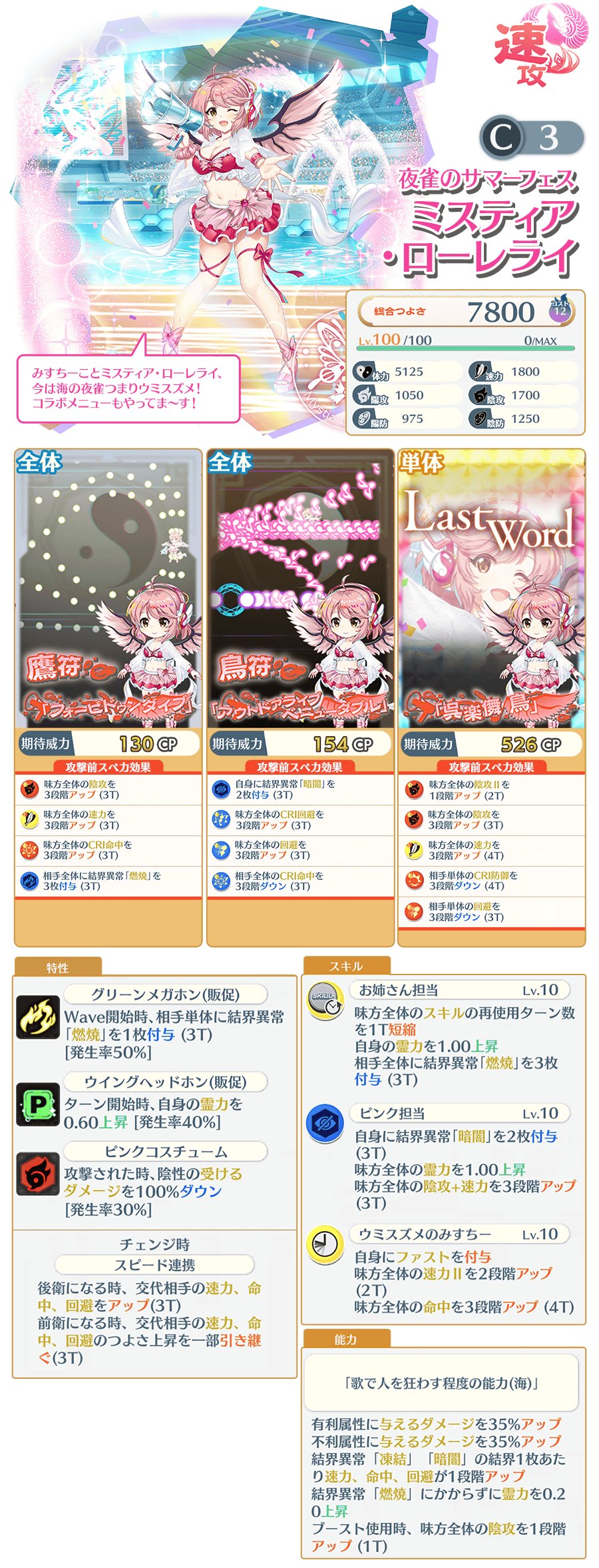 아무래도 분위기가 라이브 이벤트와 함께 나와서 그런지 영야초 버전 보다는 화영총 버전의 미스티아와 악곡으로 나온 느낌이군요.