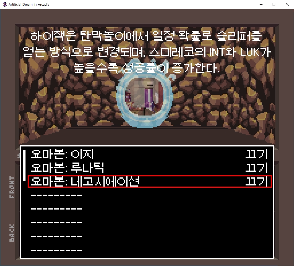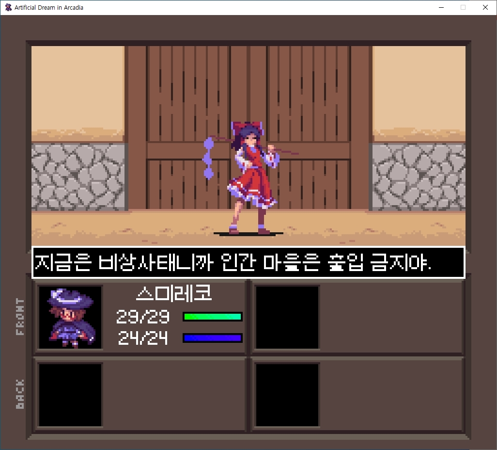 ○ 관련 : https://simugung.tistory.com/65 여신전생풍 동방 2차창작 던전RPG "Touhou Artificial Dream in Arcadia" 오는 23일 정식판 공개 예정 September 26, 2023 (혹시 버그가 있으면 꼭 알려달라는 개발자분의 메시지)