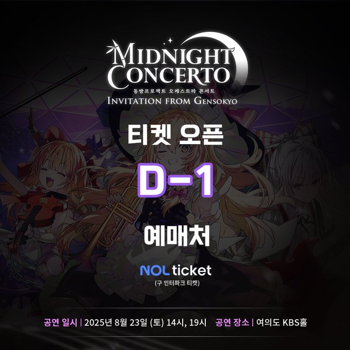 韓国で開催する東方オーケストラコンサート 『Invitation from Gensokyo 2025 ~ Midnight Concerto』の日本語版予約ページがオープンしました! 今回の公演は海外の方も予約していただける事になっています。皆さまの熱い応援をお願いします!… https://t.co/MFs6zSvNRN pic.twitter.com/zSdQkcS2tl