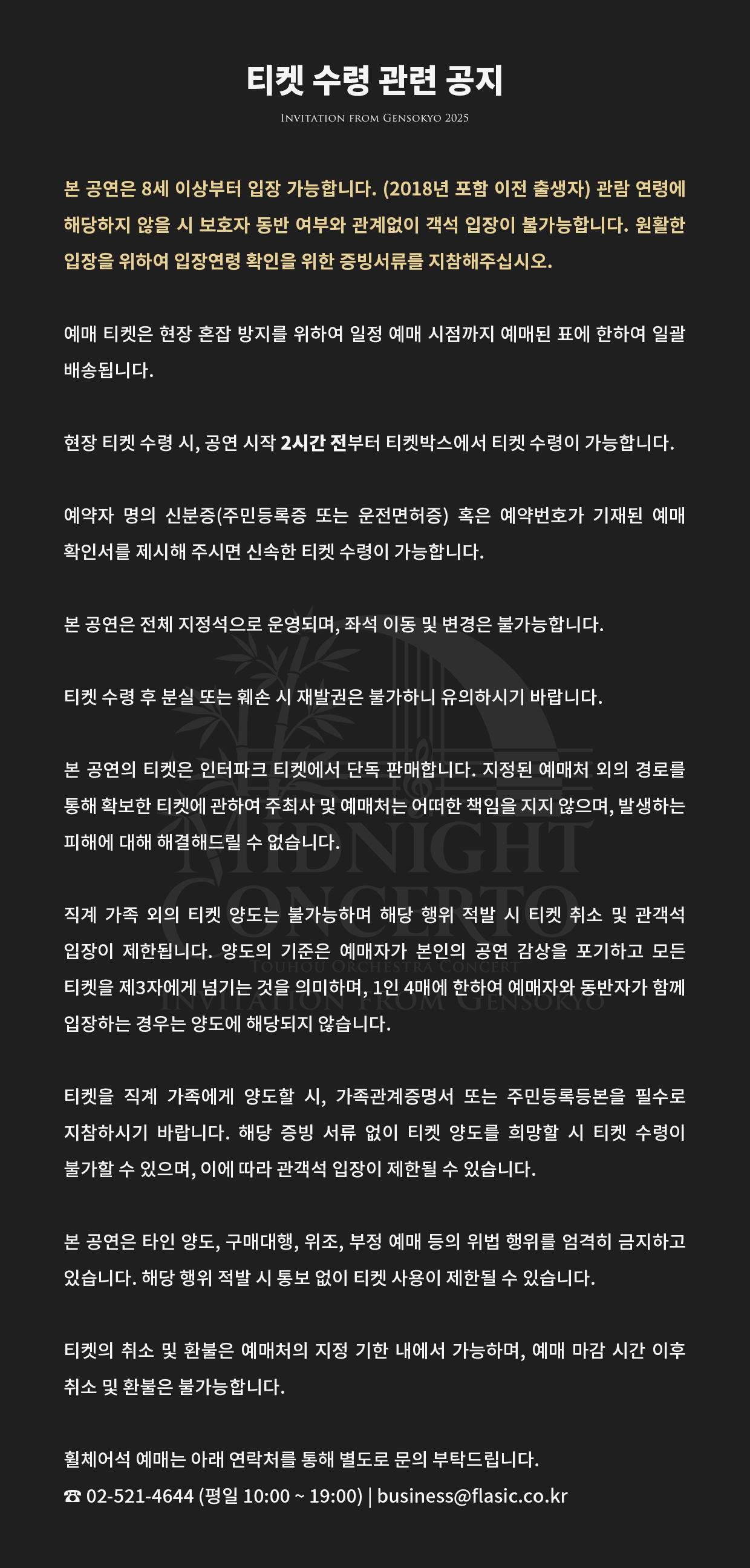 오는 8월 23일 (토) 개최 2025년 동방 오케스트라 'Invitation from Gensokyo 2025 ~ Midnight Concerto' 과 관련하여