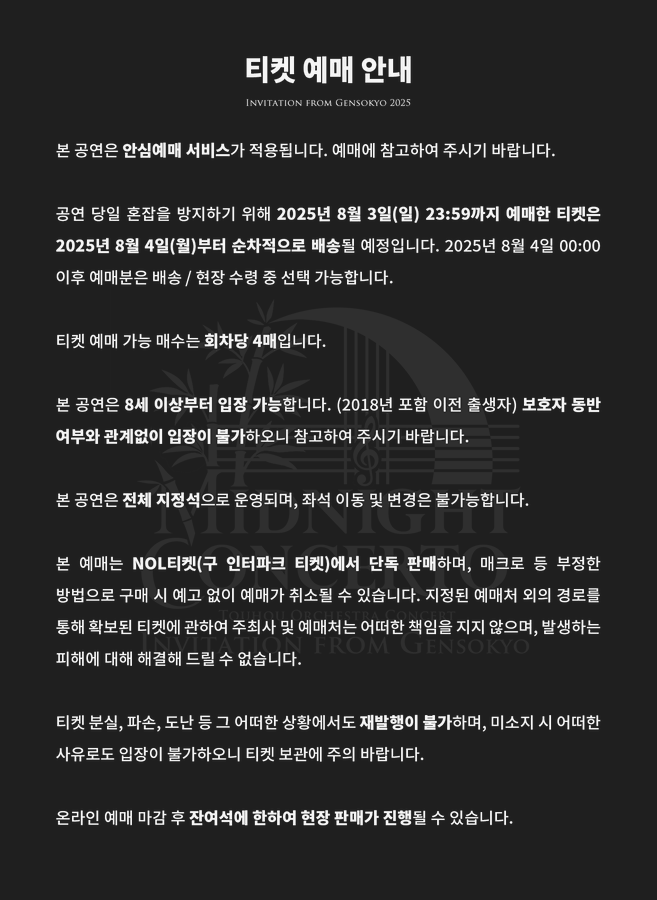 동방오케스트라 2025 'Invitation from Gensokyo 2025 ~ Midnight Concerto' 의 공연 정보/예매 정보가 갱신