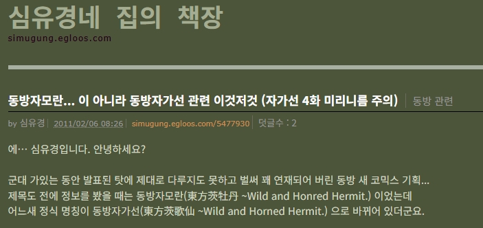 살펴보니.. 카센이 주인공인 동방 공식 코믹스 동방자가선의 15주년이었다고 하는군요.