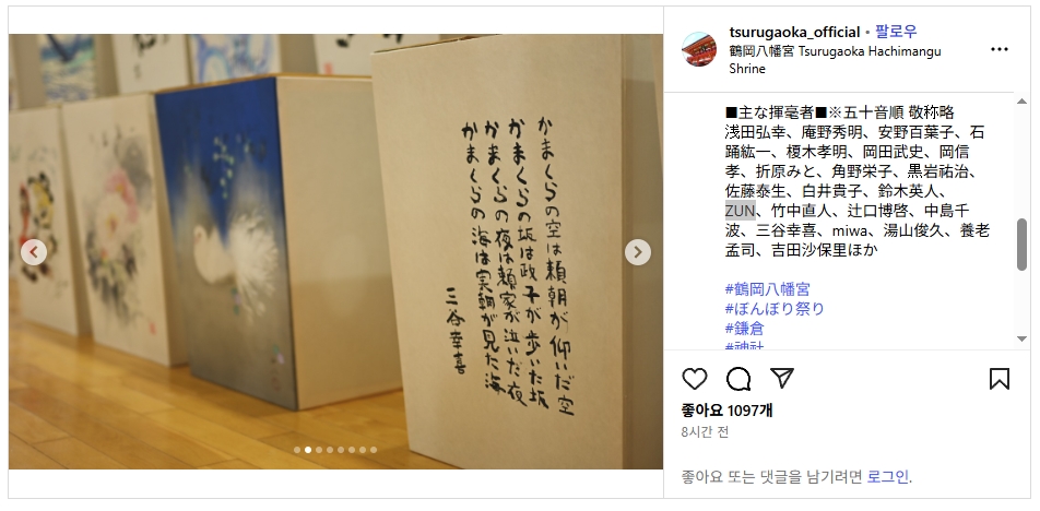 - 쓰루가오카하치만구 (鶴岡八幡宮) 측 인스타그램