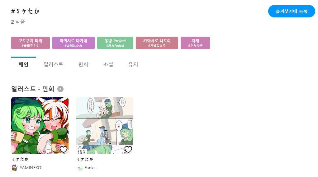 참고로 이 상태에서 # 태그 부분을 누르면 해당 작품들을 확인할 수 있습니다.