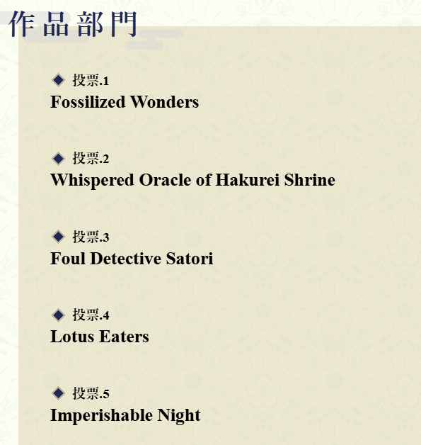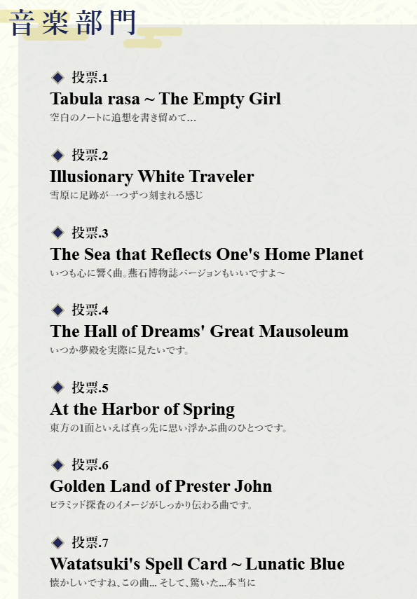 東方Projectに登場するキャラクターや音楽などの人気投票を行う非公式のオンラインイベントです。