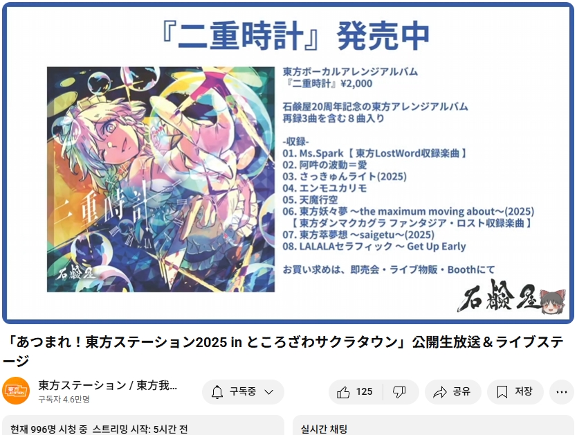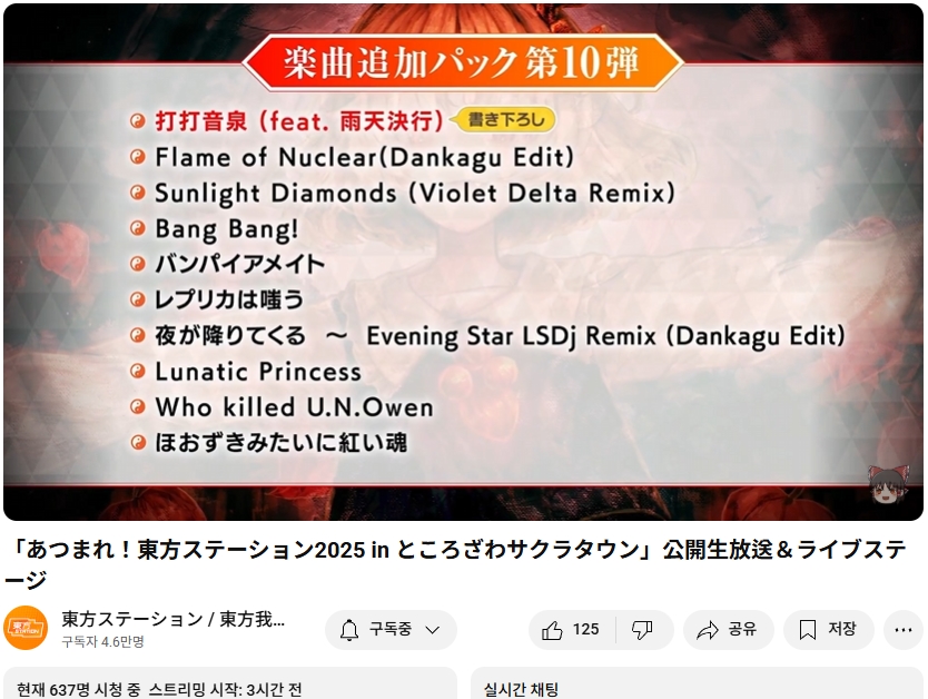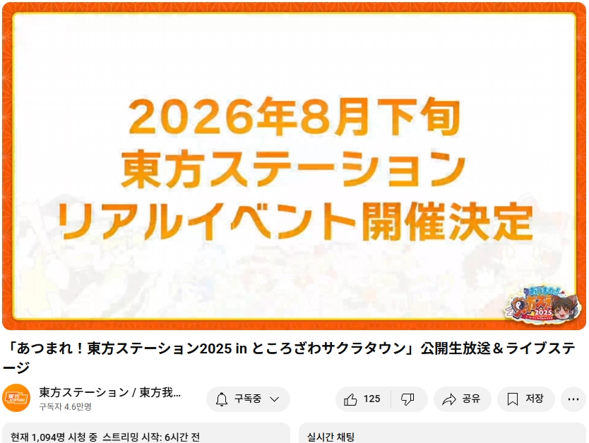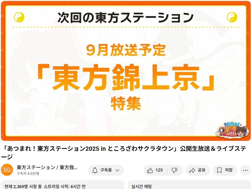 2025년 8월 30일 오늘, 동방스테이션 방송의 오프라인 행사인 '모여라! 동방스테이션 2025 in 토코로자와사쿠라타운 파이널' 가 개최되었습니다.
