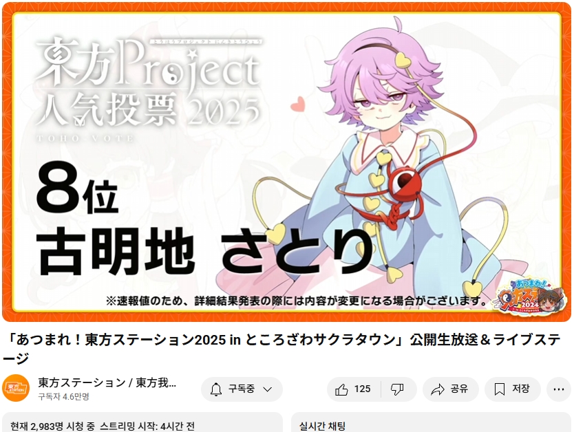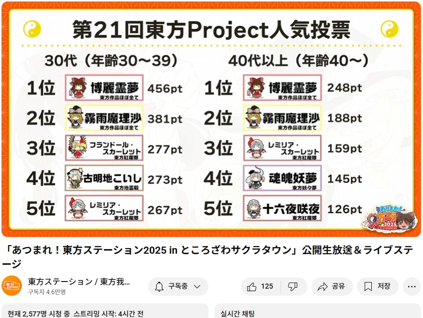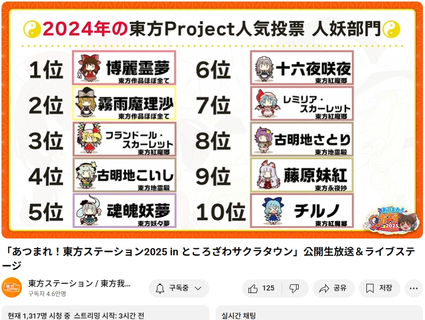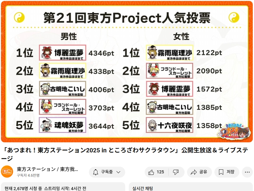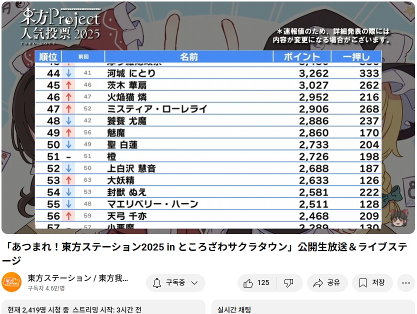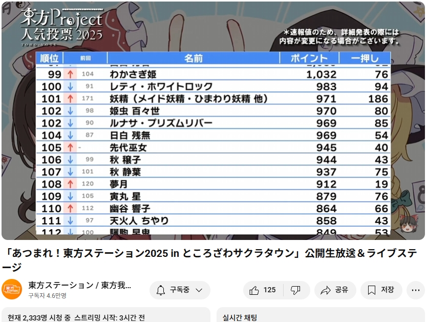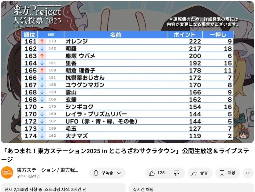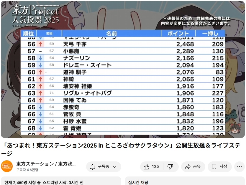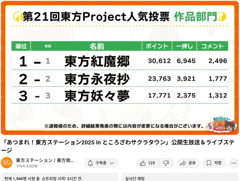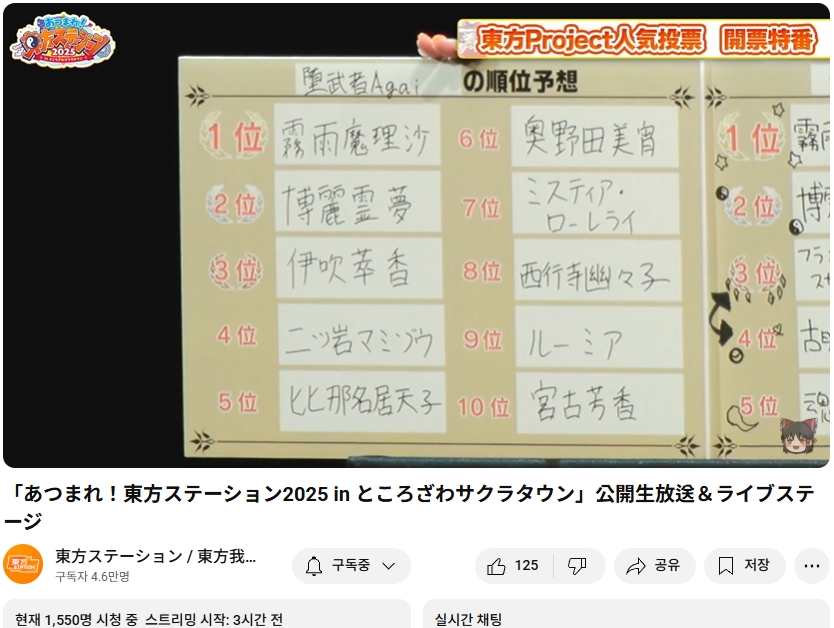 참고로 작년 1위가 레이무 였습니다. 이변...?!