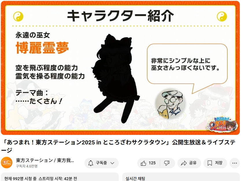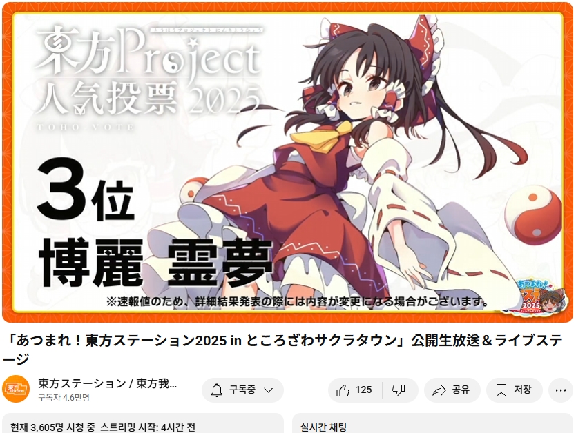 | 올해 하쿠레이신사 우타마츠리 2025(라이브 이벤트) 일정 및 참여 서클 정보가 공개 (1) | 2025.08.30 |