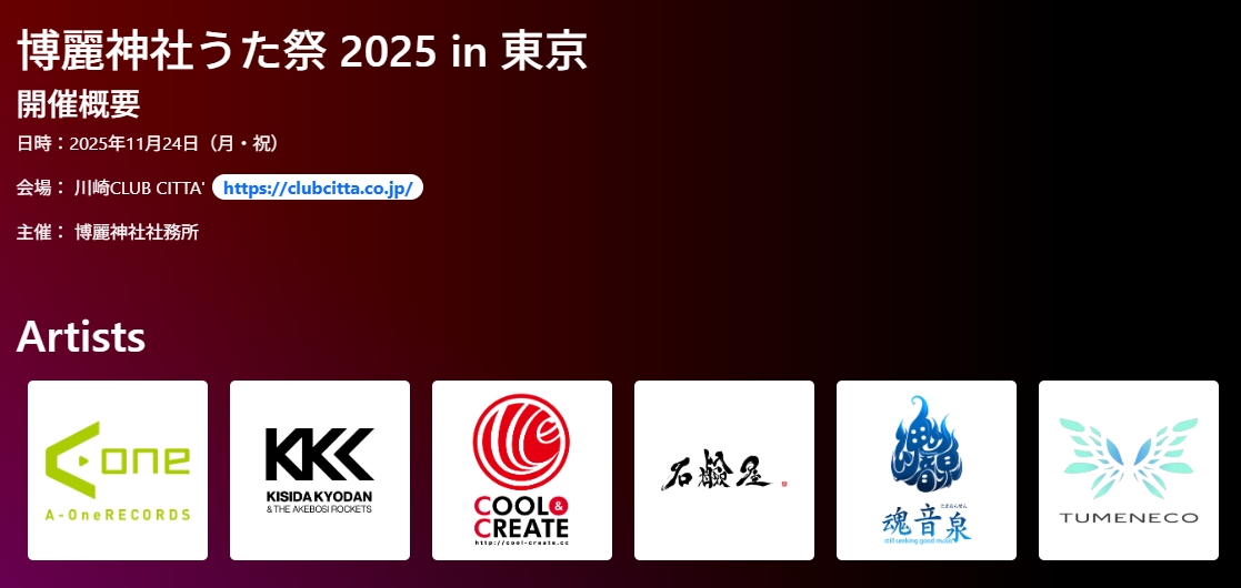 하쿠레이신사 우타마츠리 2025 in 도쿄 (博麗神社うた祭 2025 in 東京)