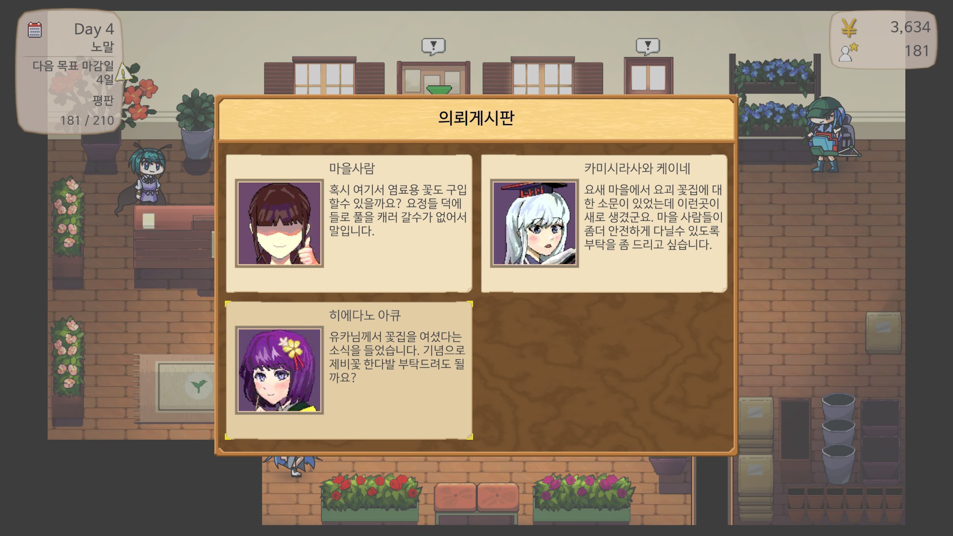 이 게임은 유카가 되어 마을에서 꽃집을 운영하며 원활한 꽃 수급을 위해 요력을 쏟아 부어가며 꽃을 키우고