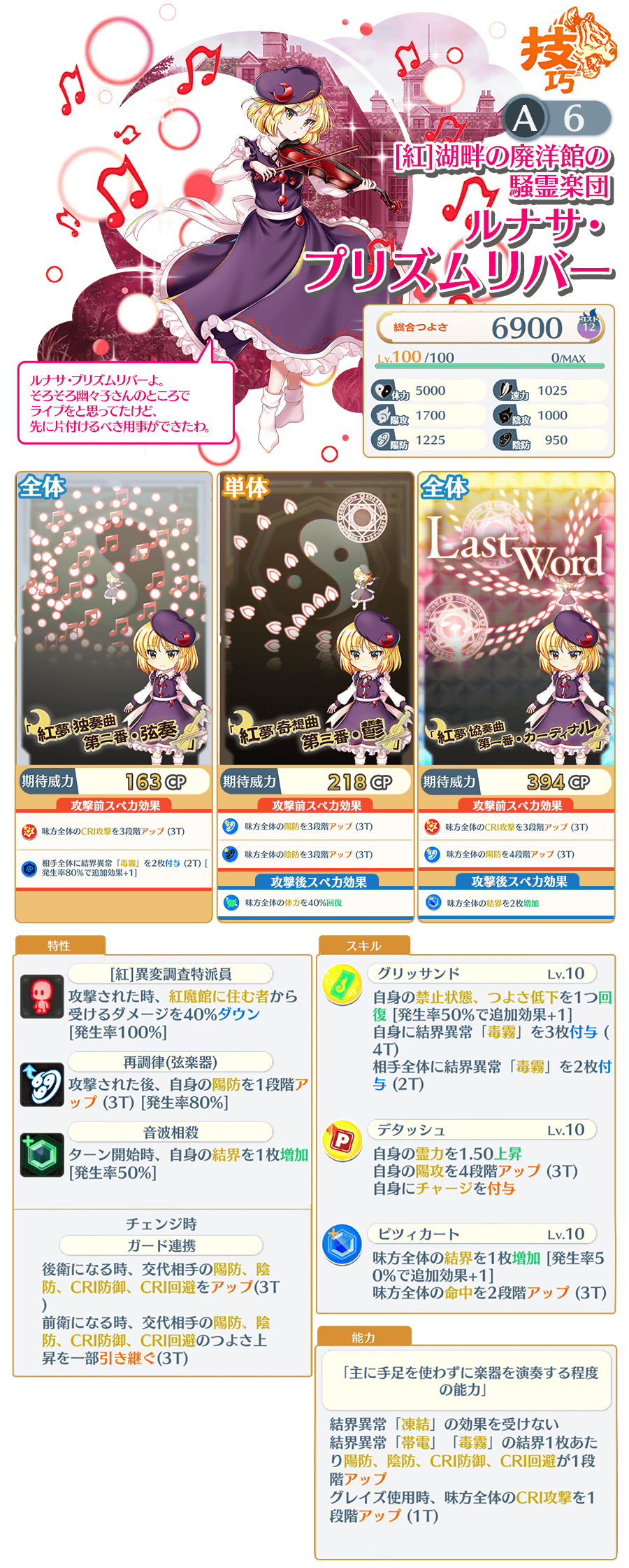 [紅]湖畔の廃洋館の騒霊楽団 ルナサ・プリズムリバー(A6)