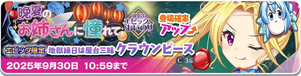 「東方LostWord」をご利用いただき、誠にありがとうございます。 2025年9月12日のメンテナンスにて、 下記内容の更新を実施しました。 ◆アップデート内容 「晩夏のお姉さんに憧れて」エピッ