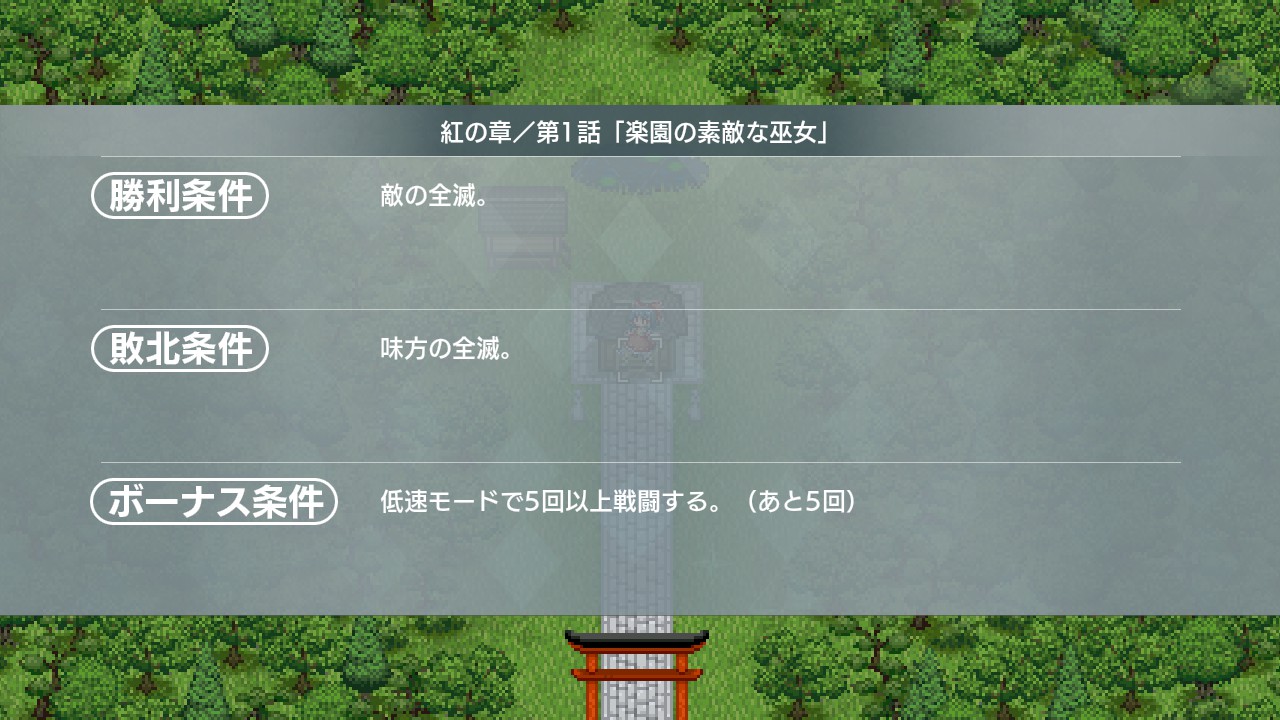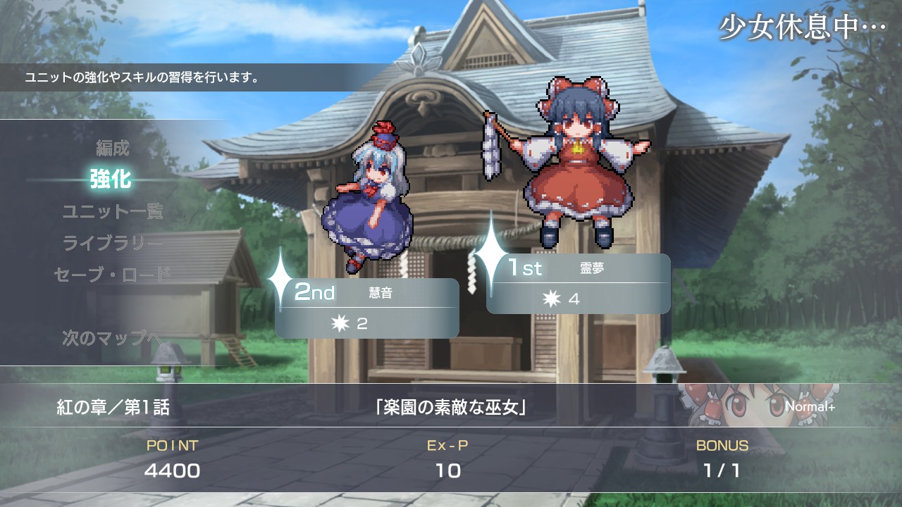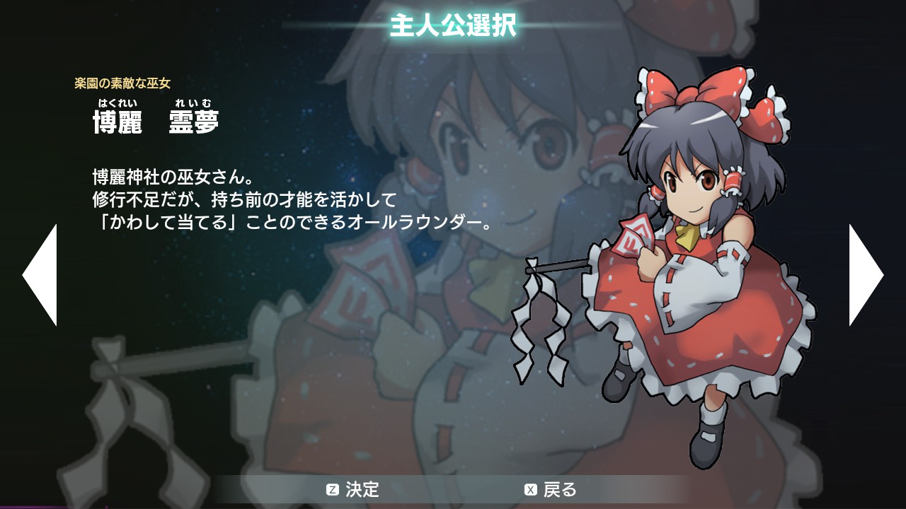 게임은 레이무 루트와 마리사 루트로 나눠져 있는데, 주인공을 누구로 고르는가에 따라 일부 스테이지 분기 및 유닛 구성에서 차이가 생깁니다. (결과적으로는 서로 합류하여 같이 진행하게 됩니다.)
