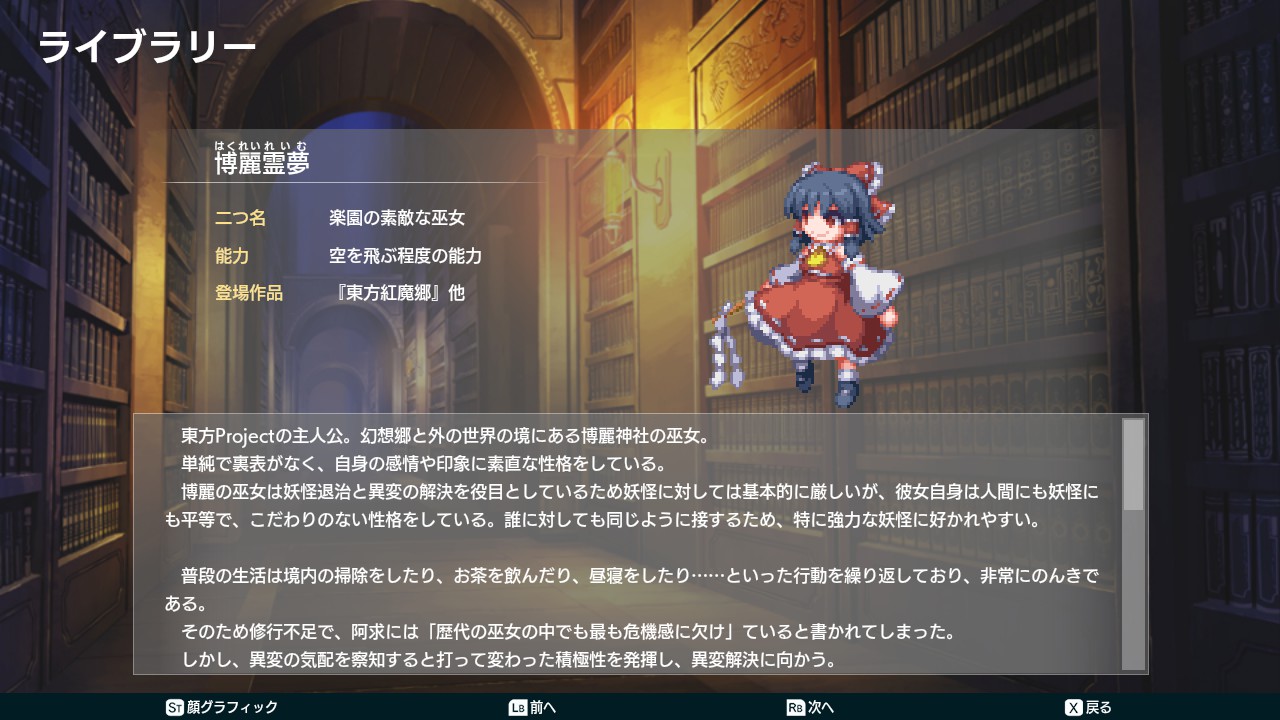 이 게임 및 동방프로젝트의 다양한 용어 해설, 인물 소개, 스펠카드 휘득 현황, 시나리오 챠트 확인 등등을 다룬 사전 입니다.