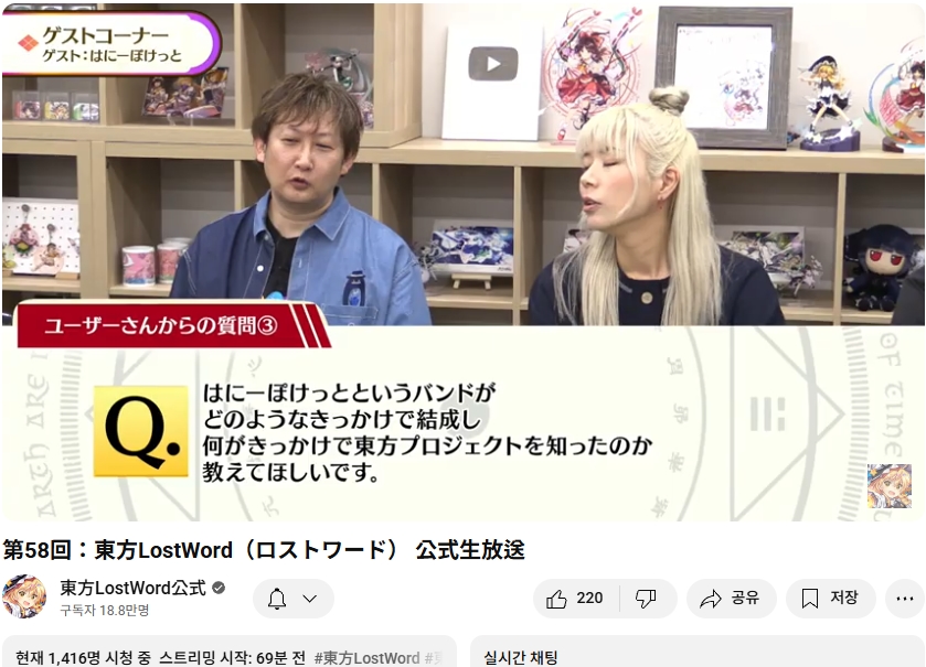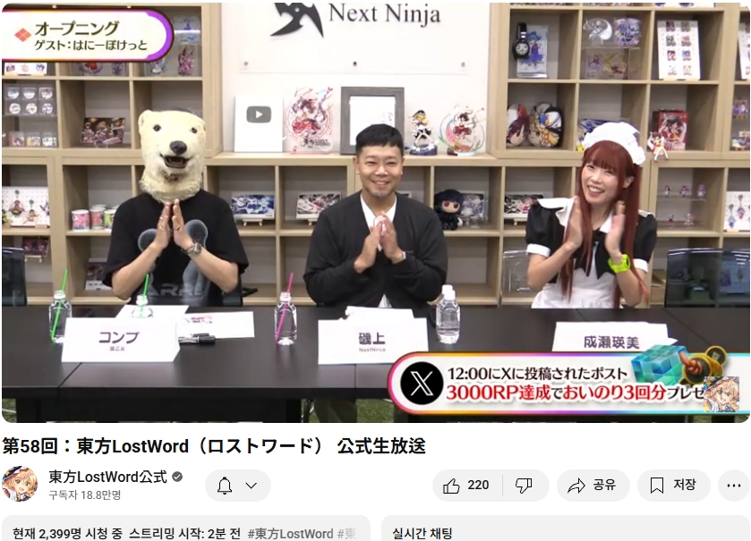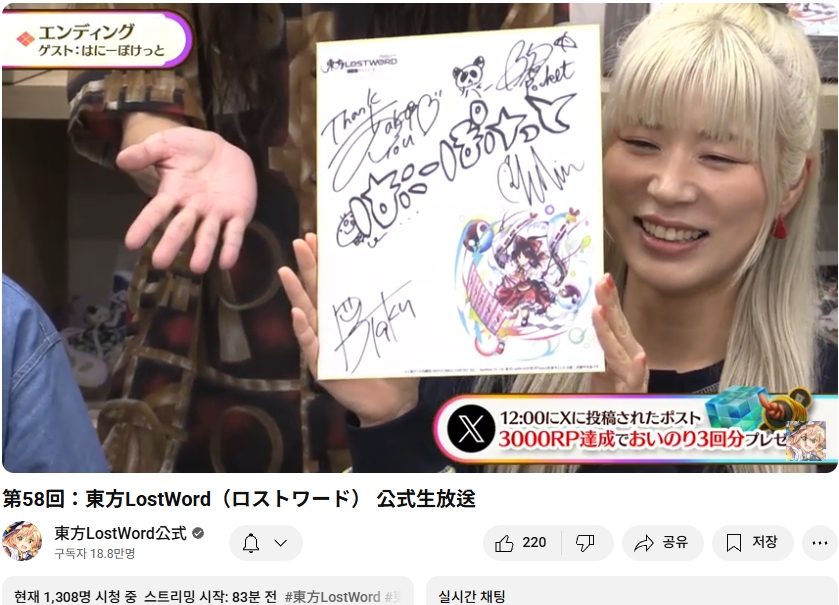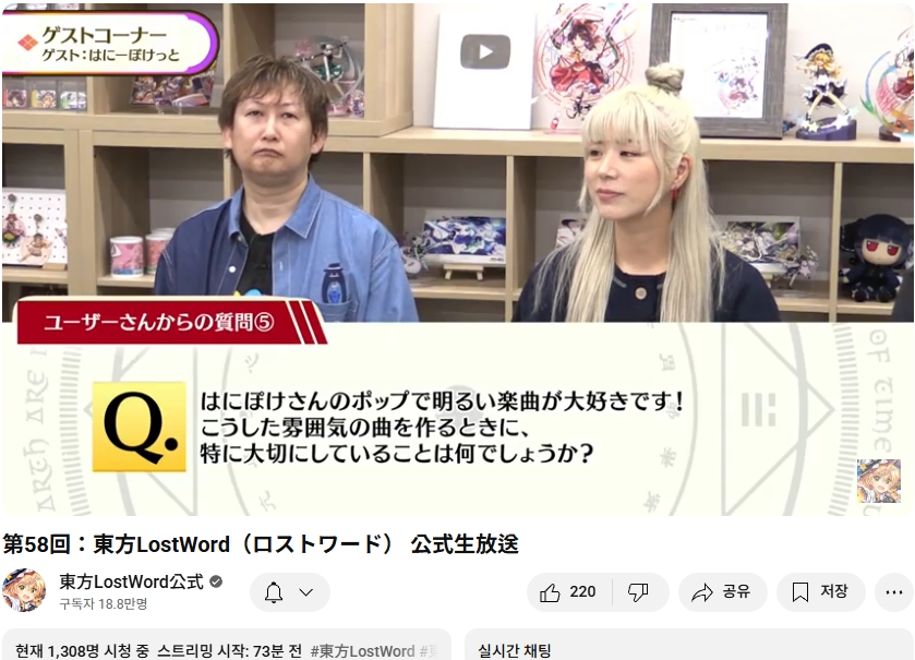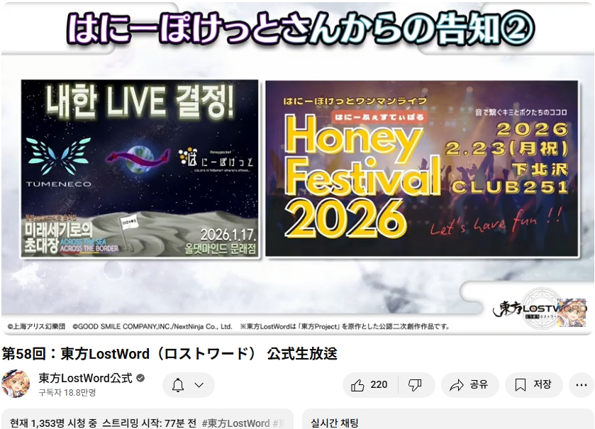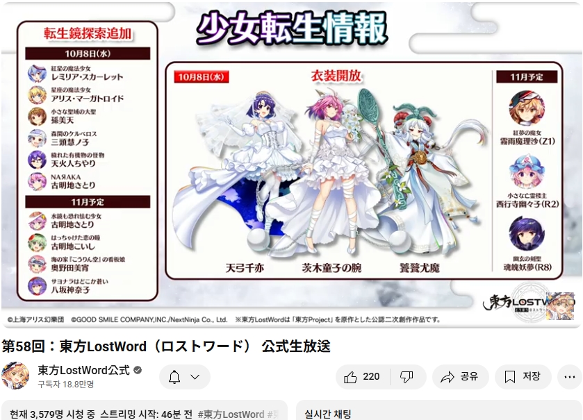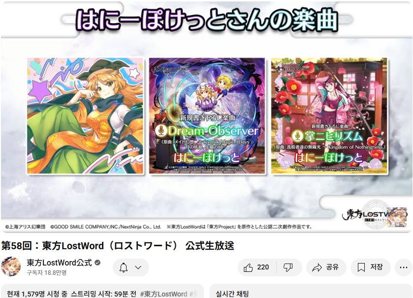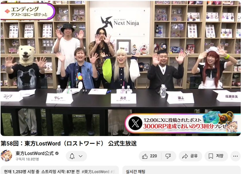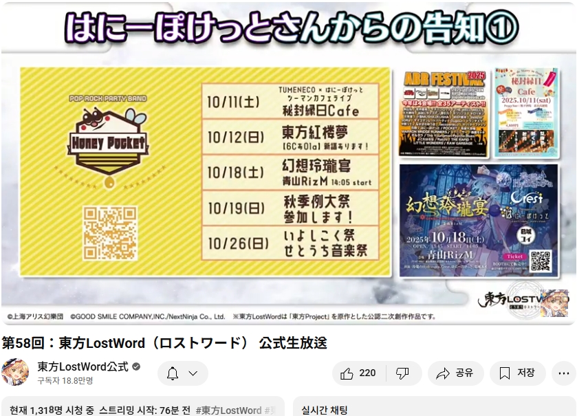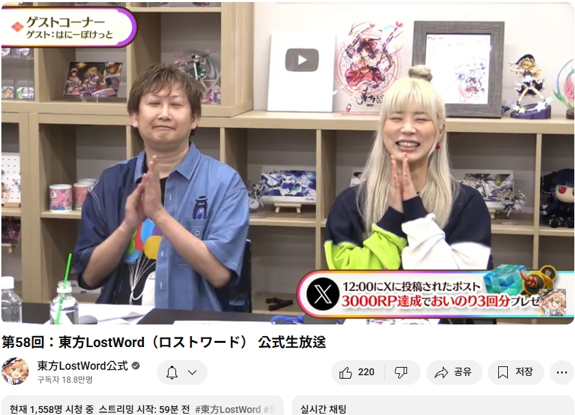 오늘인 9월 29일 (월) 19시부터 동방로스트워드의 업데이트 정보 등을 다루는 생방송이 실시되었습니다.