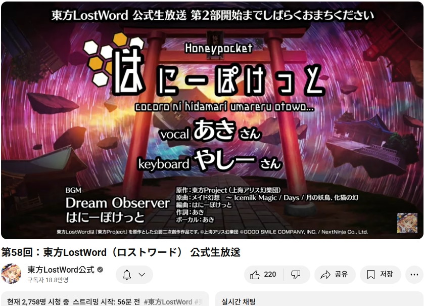 【#東方LostWord 公式生放送 第58回】