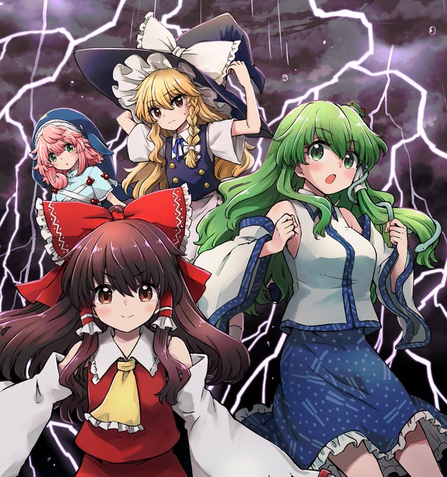 대문 일러스트는 미요이와 더불어 마리사, 레이무, 사나에가 장식하고 있군요.