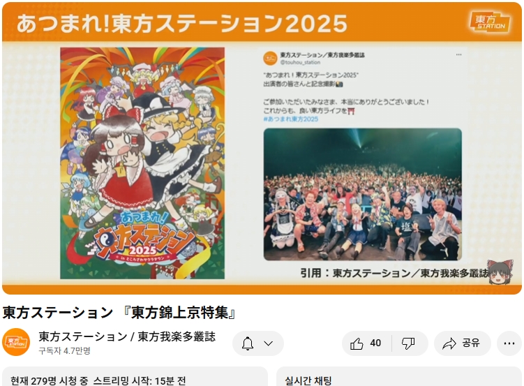 2. https://simugung.tistory.com/810 모여라! 동방스테이션 2025 행사 개최(8/30 토), 아키마키님 사인회와 공개 생방송, 인기투표 결과 발표 등 여러 기획도