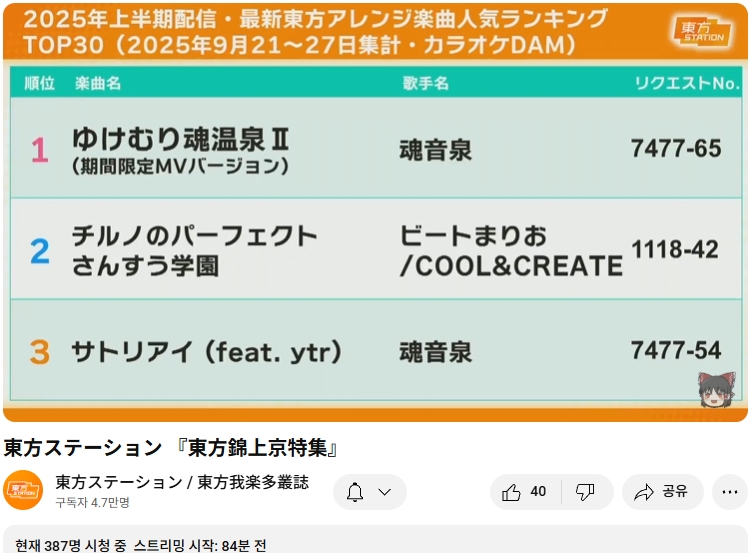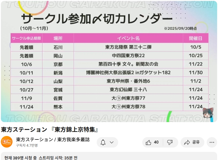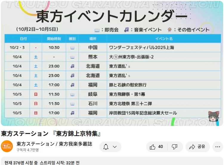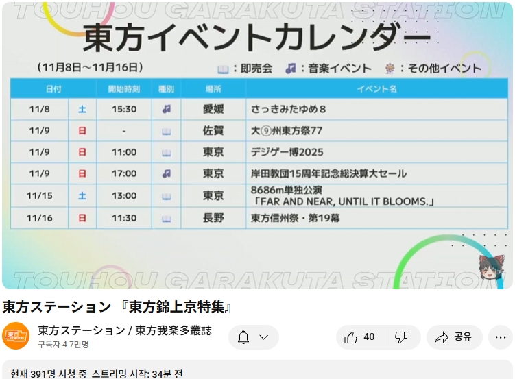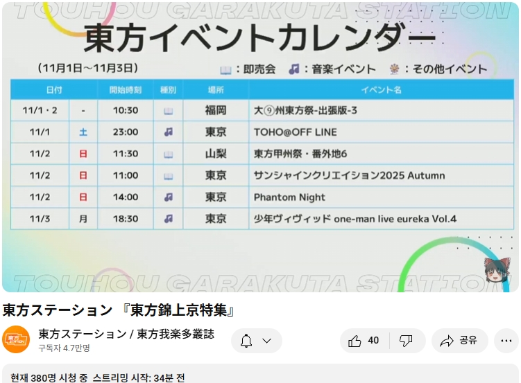자세한 내용은 👉️ https://touhougarakuta.com/news/thst2510 (방송 안내 기사 - 가라쿠타총지)