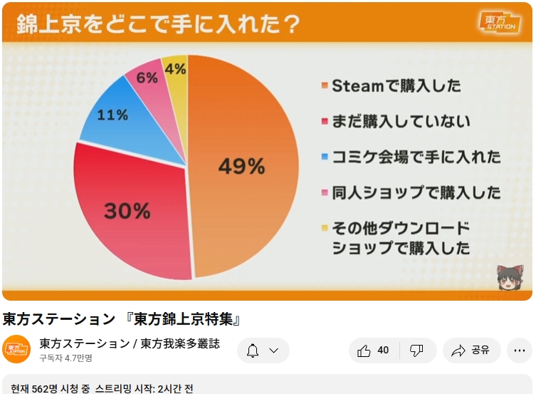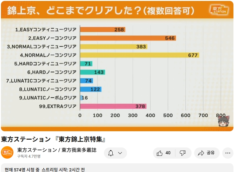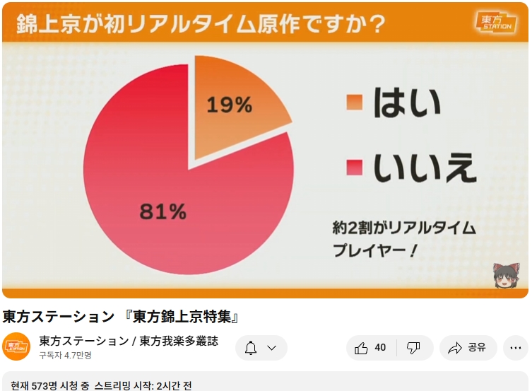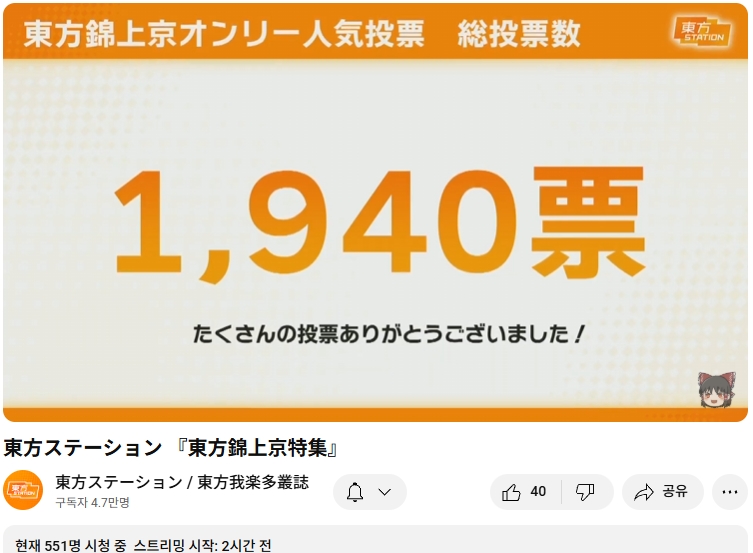투표 참가자의 약 20% 가 금상경이 처음으로 실시간 입수한 동방 원작이라는 분들이었습니다.