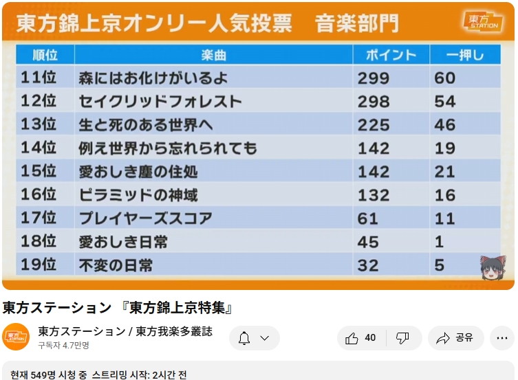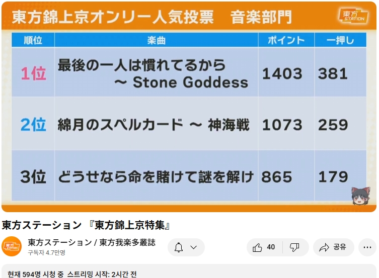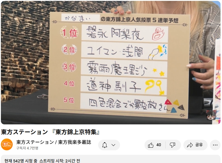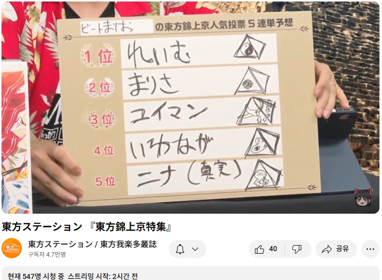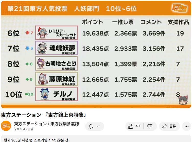 ◆ 동방금상경 인기투표 재개 & TOP 5 순위 맞추기 퀴즈 개최!