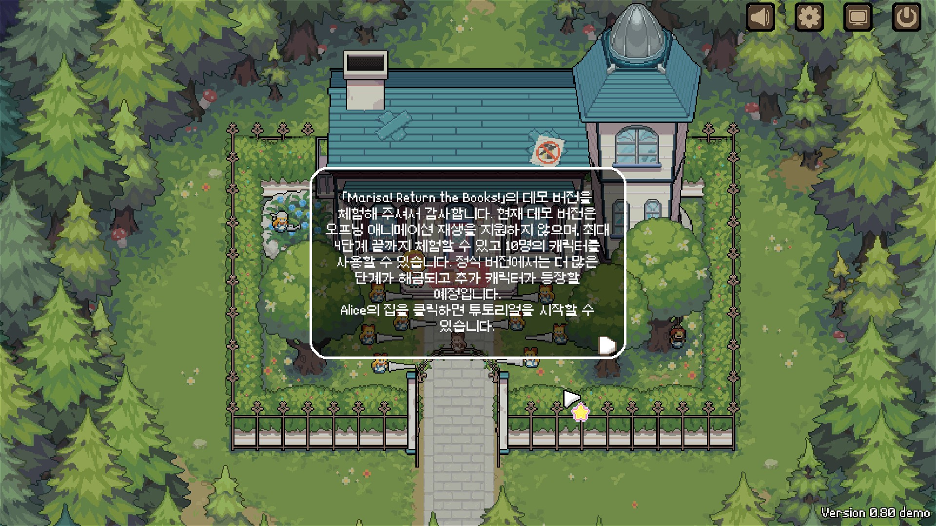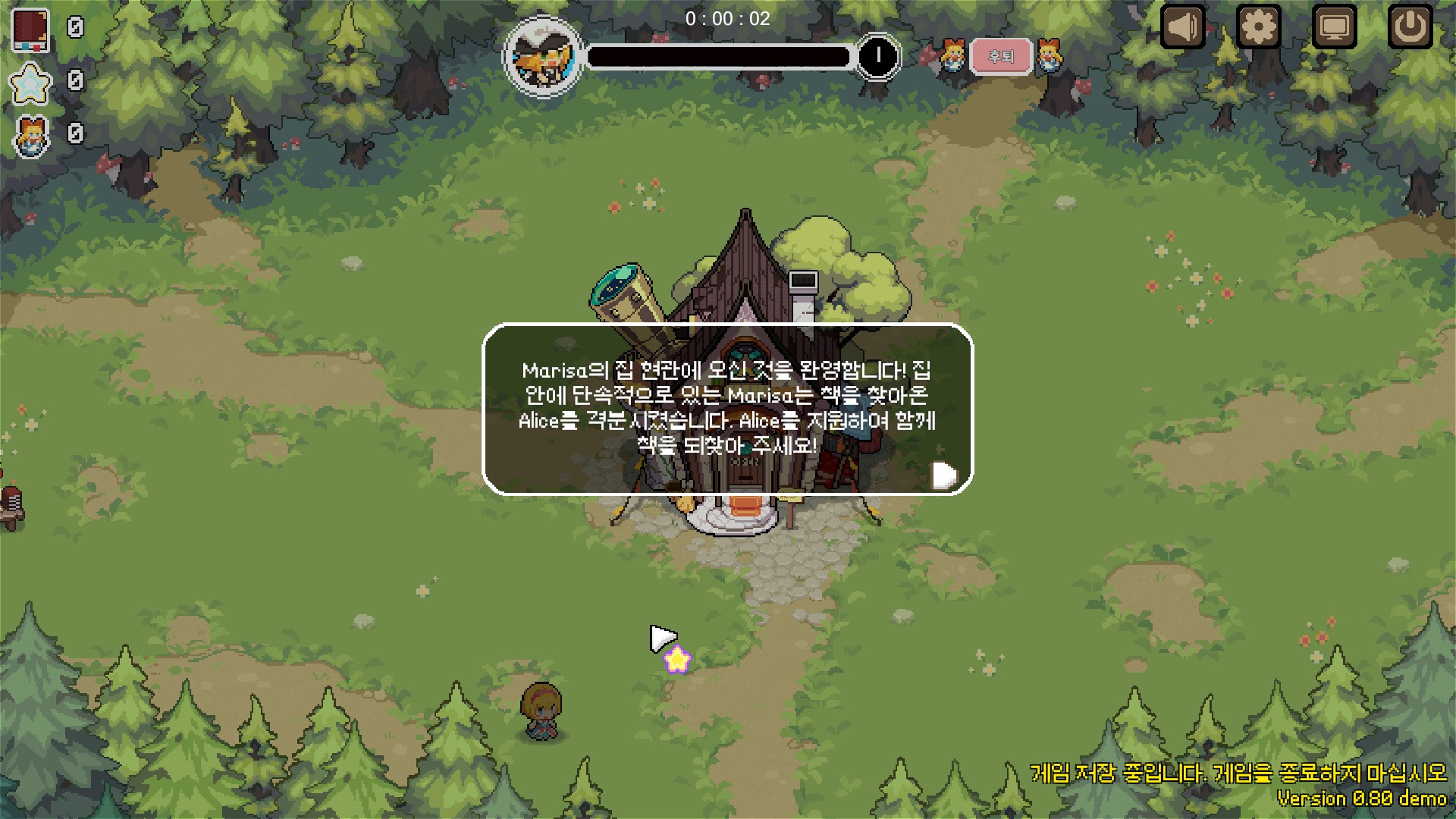 ... 이런 느낌으로 마리사를 두들겨패고 책을 돌려받는 게임이었습니다.
