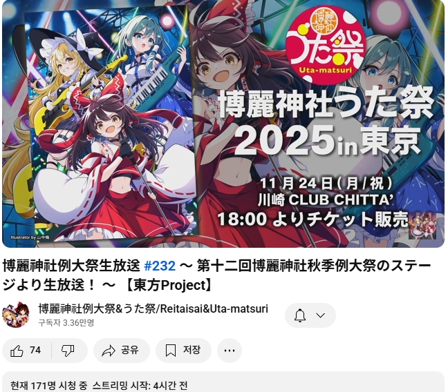 오는 11/24 (월) 개최 예정인 하쿠레이신사 우타마츠리 2025 in 도쿄 (라이브 이벤트)