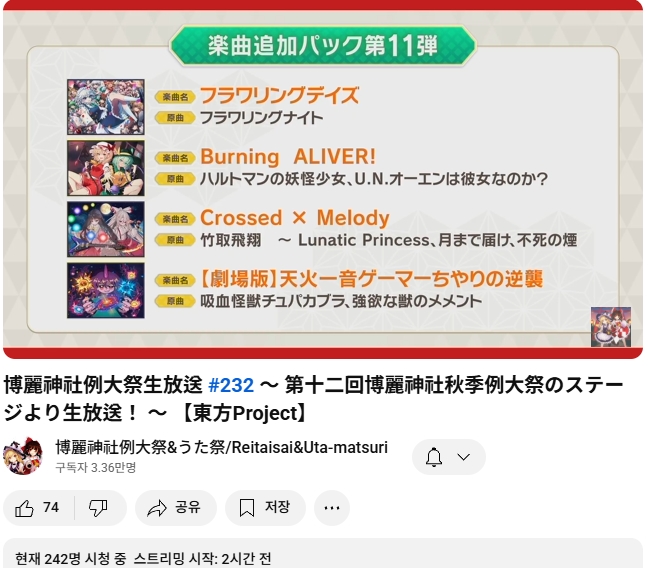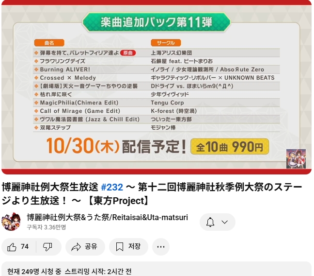 하쿠레이신사 예대제 생방송 #232 ~ 제12회 하쿠레이신사 추계예대제의 스테이지로부터 생방송! ~ [동방프로젝트]