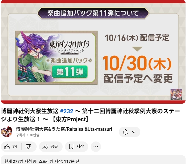 카나마이님과 동방스테이션 관련 (11/7 우리들의 동방음악편) 안내도