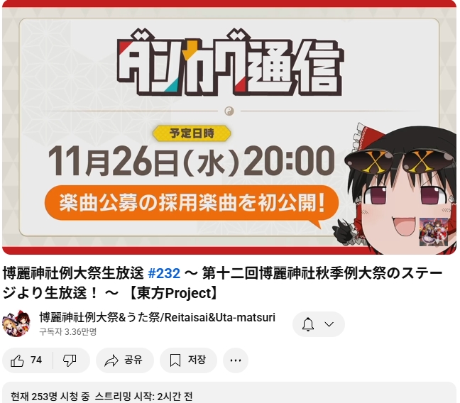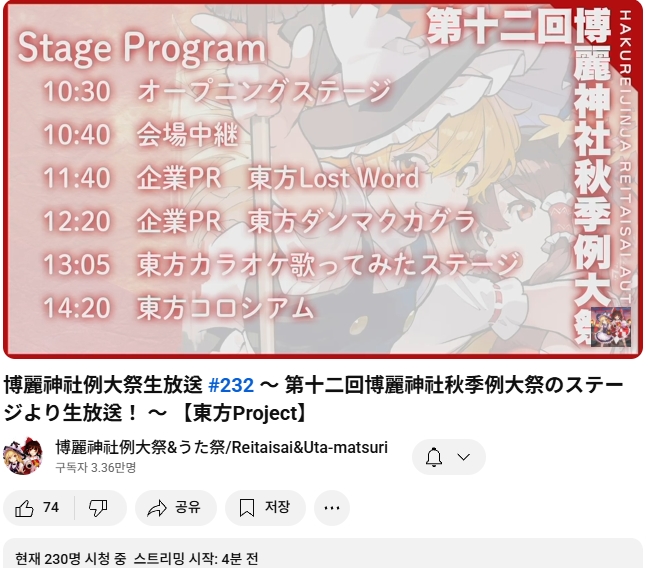 博麗神社例大祭生放送 #232 ~ 第十二回博麗神社秋季例大祭のステージより生放送! ~ 【東方Project】