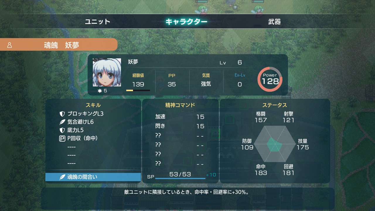 이번 미션에서 임시 합류하는 요무의 경우 적 유닛에게 근접했을 때 명중, 회피 +30% 보정을 얻는 특성을 갖고 있어서