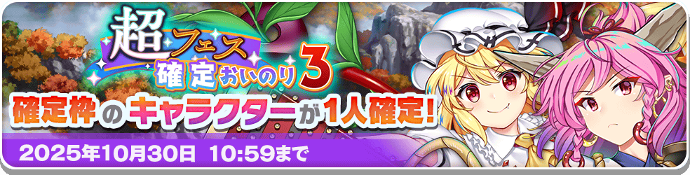 「東方LostWord」をご利用いただき、誠にありがとうございます。 2025年10月23日のメンテナンスにて、 下記内容の更新を実施しました。 ◆東方LostWord 公式生放送 第59回 配信! 下記時間帯に、