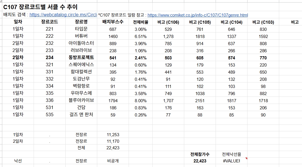 (앞서 C106 때는 장르 통폐합이 좀 있었습니다.)