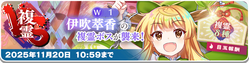 「東方LostWord」をご利用いただき、誠にありがとうございます。 2025年11月6日のメンテナンスにて、 下記内容の更新を実施しました。 ◆アップデート内容 「ひらけ! 弾幕即売会」エピック