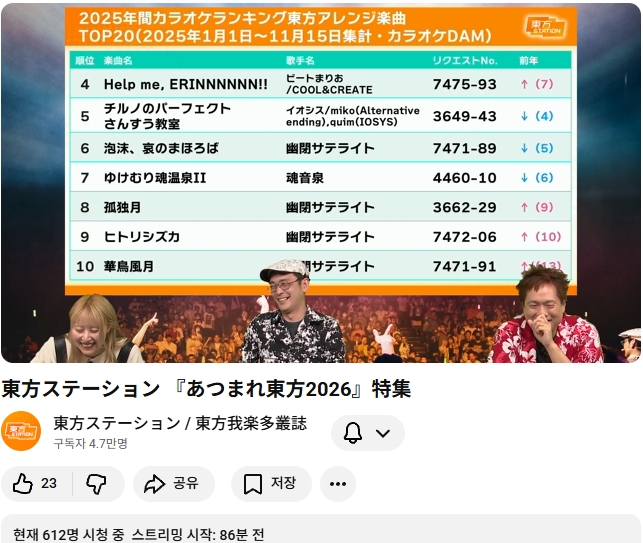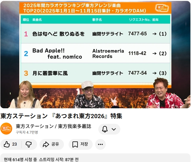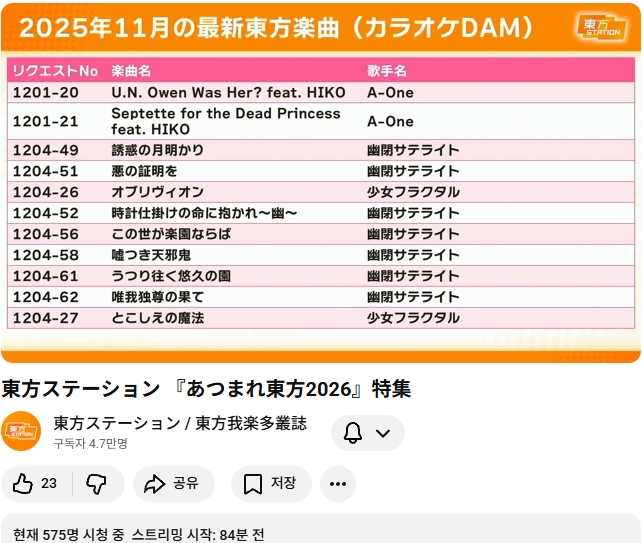 이번은 '모여라 동방 2026' 특집편이라는 제목이더군요.
