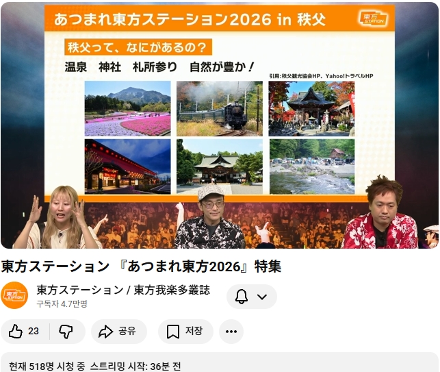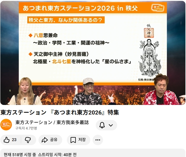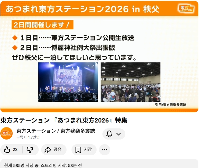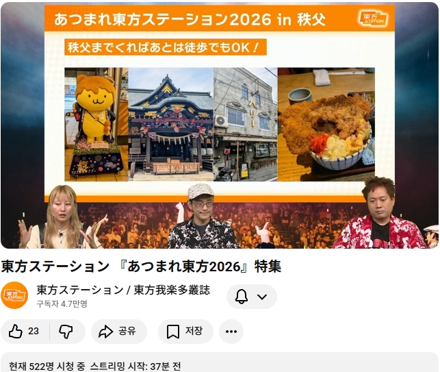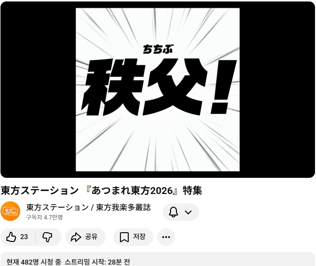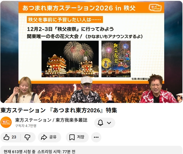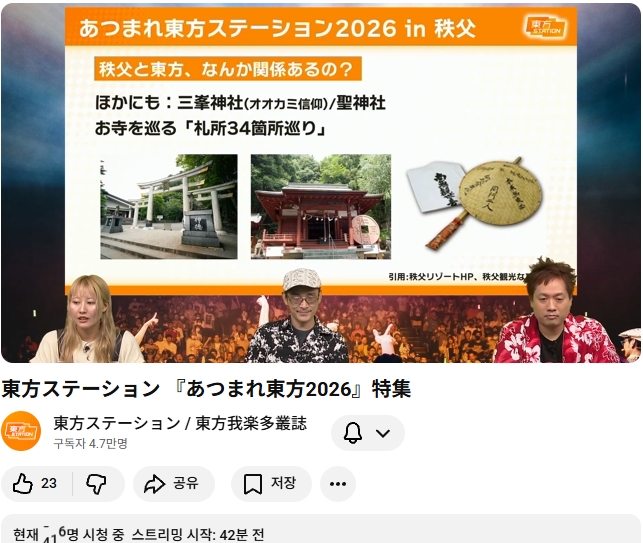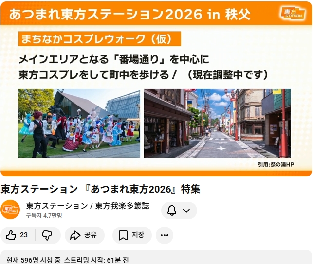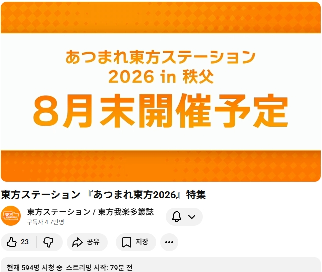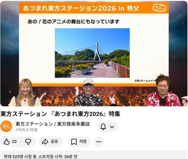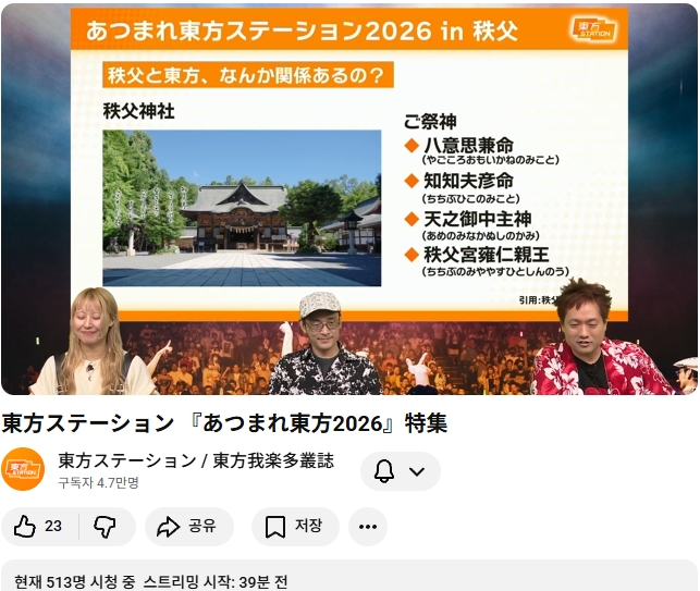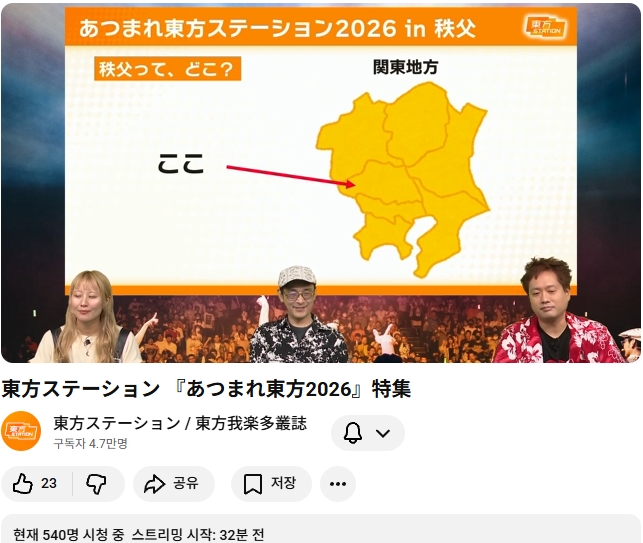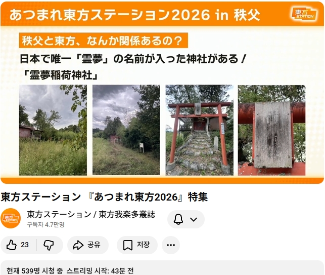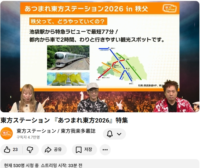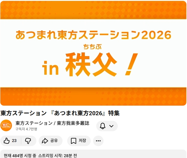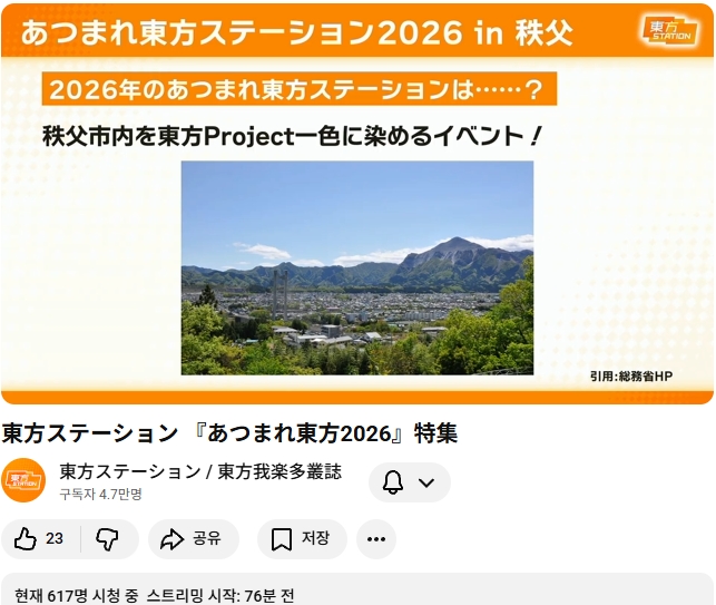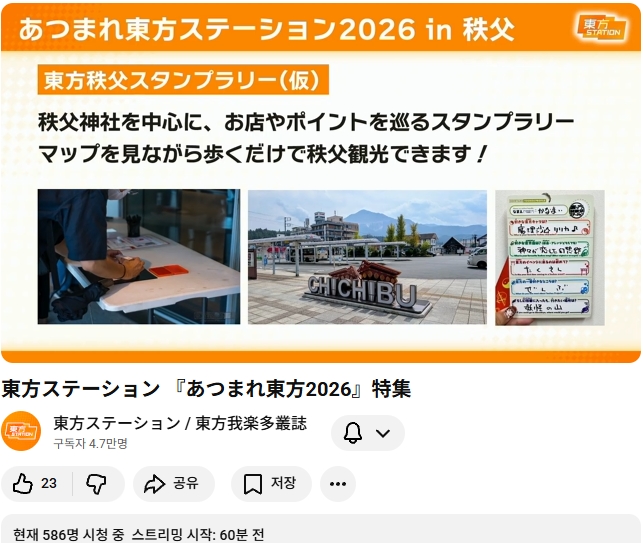 내년 (2026) 모여라 동방스테이션은 사이타마현 치치부시 에서 개최 예정이라고 합니다.