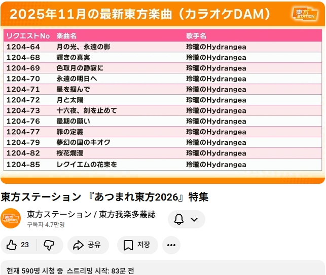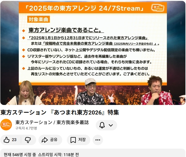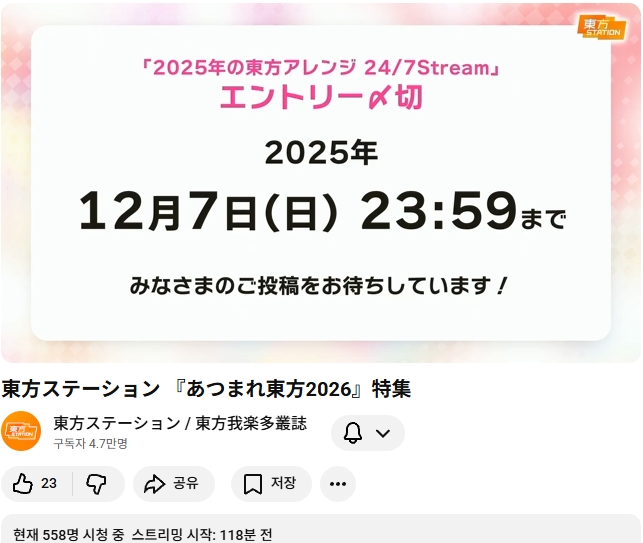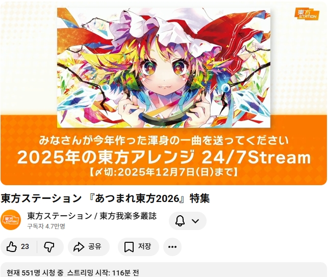 2025 동방 어레인지 결산 24시간 송출 방송이 12월에 예정되어 있다고 하는군요.