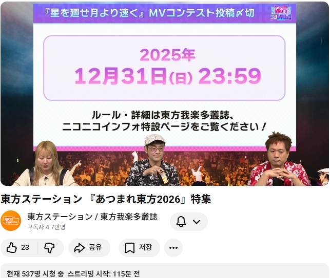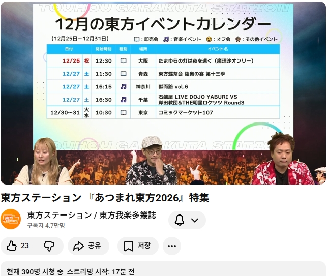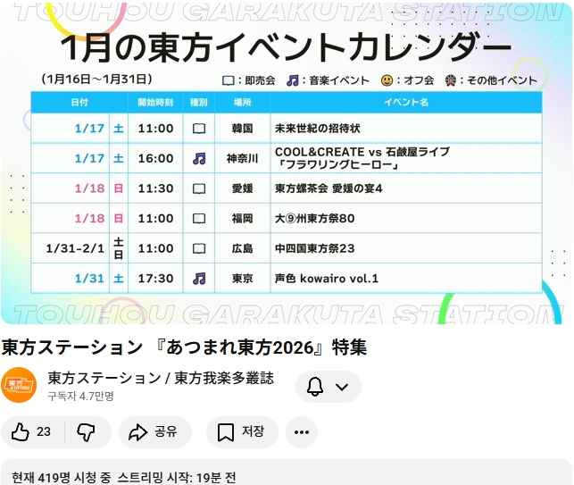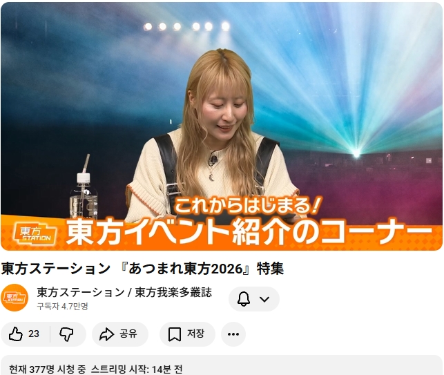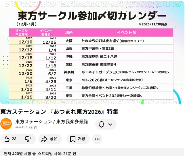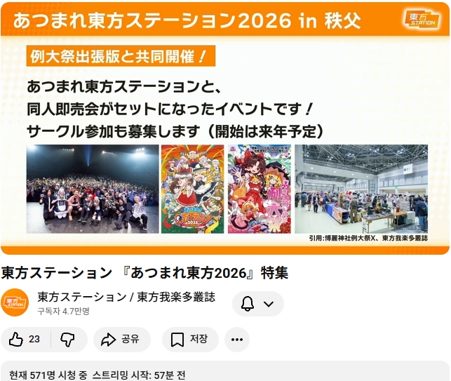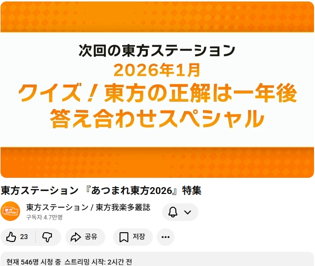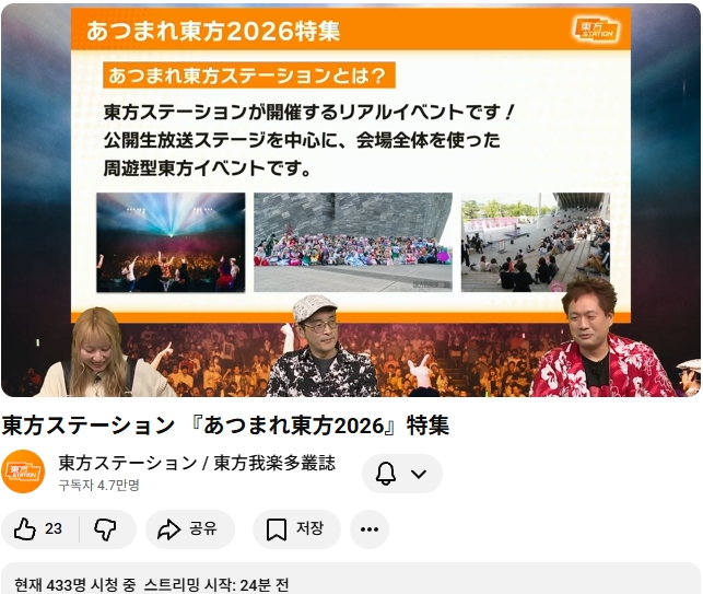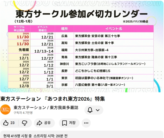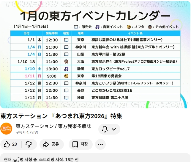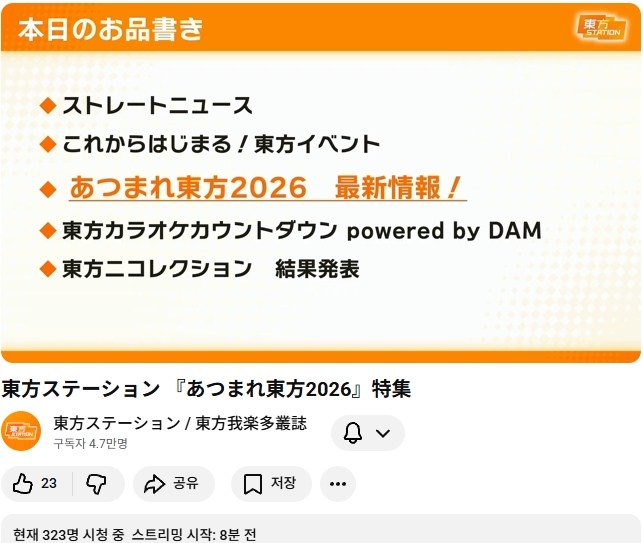 다음번 동방스테이션은 모여라 동방 2026 특집 입니다!! (가라쿠타총지 안내 기사)