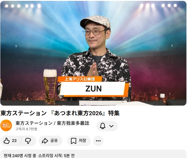 방송 개시, 게스트로 ZUN님도 함께 하시는군요.