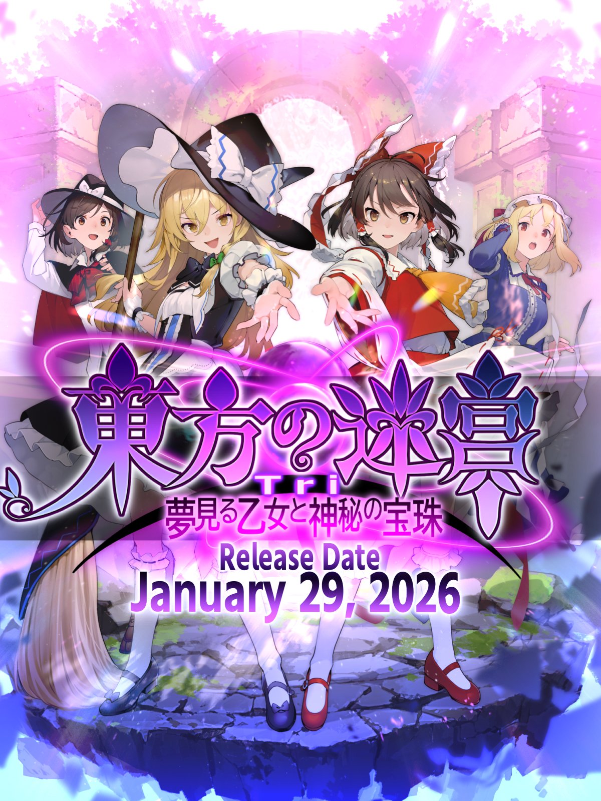 人数とLvの暴力で敵を叩きのめすDRPG「東方の迷宮Tri -夢見る乙女と神秘の宝珠-」、発売日が日本時刻2026/1/29(太平洋標準時刻1/28)に決定しました!