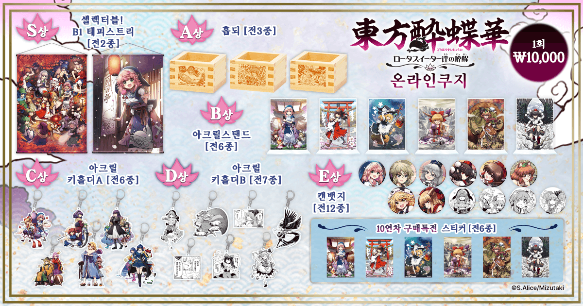 올해 연말 및 내년 연초를 앞두고 카도카와 쪽에서 콤프에이스를 통해 연재 중인 동방취접화의 굿즈들을 온라인 뽑기 샵인 쿠지비키도(くじ引き堂) 쪽으로 다룰 예정인 모양이었습니다.